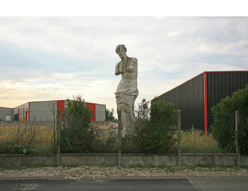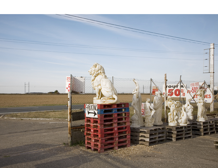 Je voudrais (mais qui ne le voudrait pas ?) qu’il n’y ai pas de malentendu. Tous ces objets, qu’ils soient spectaculaires ou pathétiques, vulgaires ou gracieux, ingénieux ou farfelus, je ne les considère pas comme des “œuvres” qu’il faudrait en quelque sorte réhabiliter. Loin de moi l’idée de tout aplanir sous le rouleau compresseur relativiste. Simplement il me parait tout de même important de porter un autre regard, un regards plus “respectueux” sur ces dispositifs dont la finalité est d’abord d’être vue, de séduire et in fine d’exister dans la jungle des signes comme telle espèce d’orchidée doit pouvoir se distinguer dans la multitudes des stratégies que déploient les espèces pour subsister ou croître. C’est cette bio diversité des signes et des stratégies de visibilité que je défends. J’ignore d’où cela me vient mais je crains plus que tout que la singularité disparaissent aussi j’identifie ces curiosités -comme ces mauvais élèves qui du fond de la classe mettaient plus d’intelligence et de talent à préparer quelques coups fumeux plutôt qu’à se fondre dans la masse- à quelque chose qui témoigne de l’indispensable variété des imaginations. C’est dans ce sens, que depuis des années et cela d’autant plus que je ne peux que constater leur raréfaction, que je m’attache à documenter les bords de route. Je n’ai pas de sympathie particulière pour le goût kitsch et du reste, j’ai toujours trouvé qu’il y avait un certain sentiment de condescendance chez ceux qui s’extasient devant la naïveté des sous produit de la culture pop. Pourtant beaucoup des objets présentés ici relèvent de quelque chose d’approchant mais qui me semble autrement plus respectable. Quelque chose qui a à voir en définitive avec la liberté, celle d’en faire un peu trop, un peu approximativement, cette liberté de s’auto proclamer, au mépris de toutes les règles de la bienséance, maître de ses choix fussent-ils laids et envahissants. J’ai assez envie qu’il demeure par-ci, par-là ce genre d’imprévu qui permet à mon travail de se poursuivre. D’une certaine façon que le combat ne cesse faute de combattants. Je serais content que ce travail soit perçu ainsi.