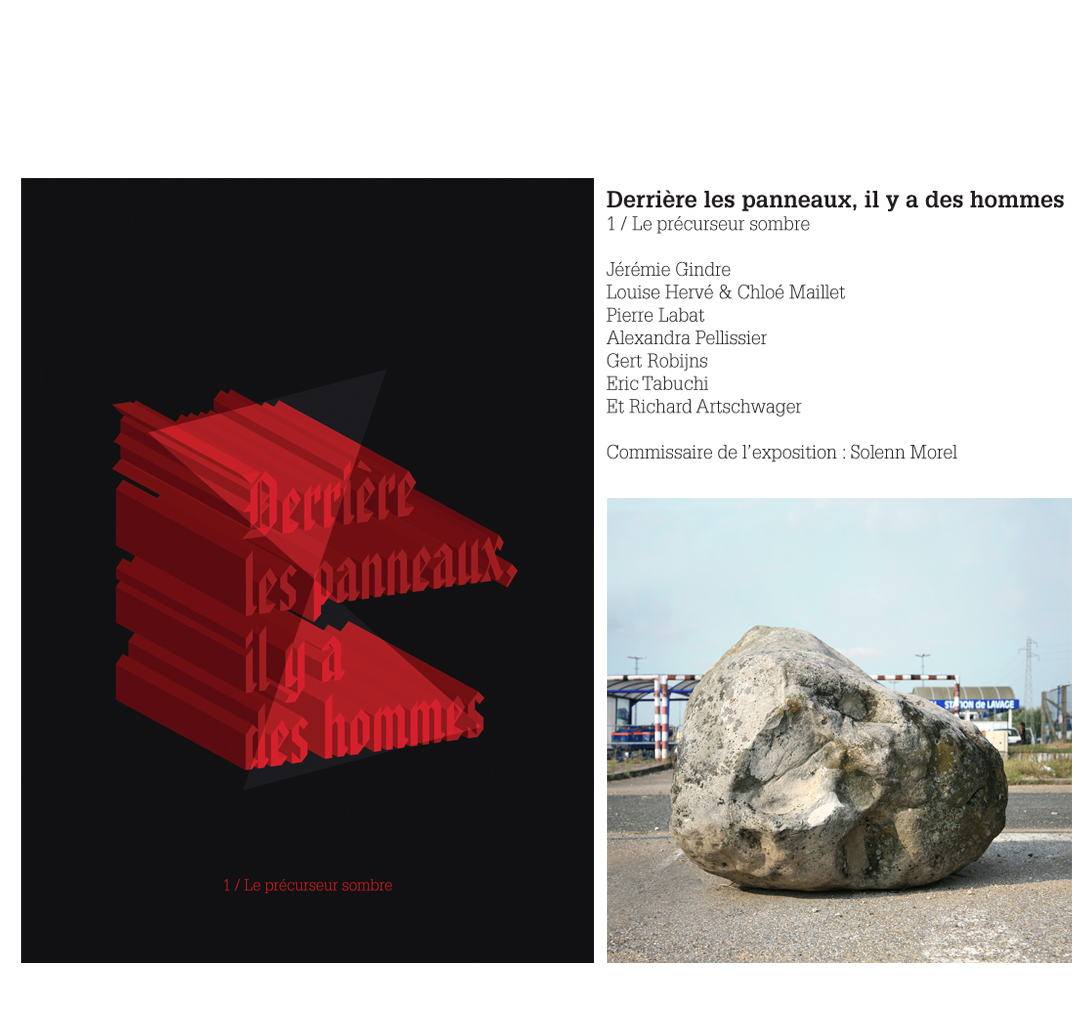 Derrière les panneaux, il y a des hommes - cet avertissement singulier que l’on peut croiser sur les autoroutes quand celles-ci sont en travaux invite le conducteur à ralentir car, comme il est très bien dit : derrière les panneaux, il y a bien des hommes. Ce signalement met à mal le mythe d'un univers autoroutier parfaitement aseptisé, hermétique et telle la perche apparaissant dans la filmographie de Godard, il témoigne de la présence d'une mécanique oeuvrant en coulisses à la production de nos déplacements. Le hors champ intègre le cadre. Car pour mieux s’en affranchir, il s’agirait de dévoiler la matière de l’art.