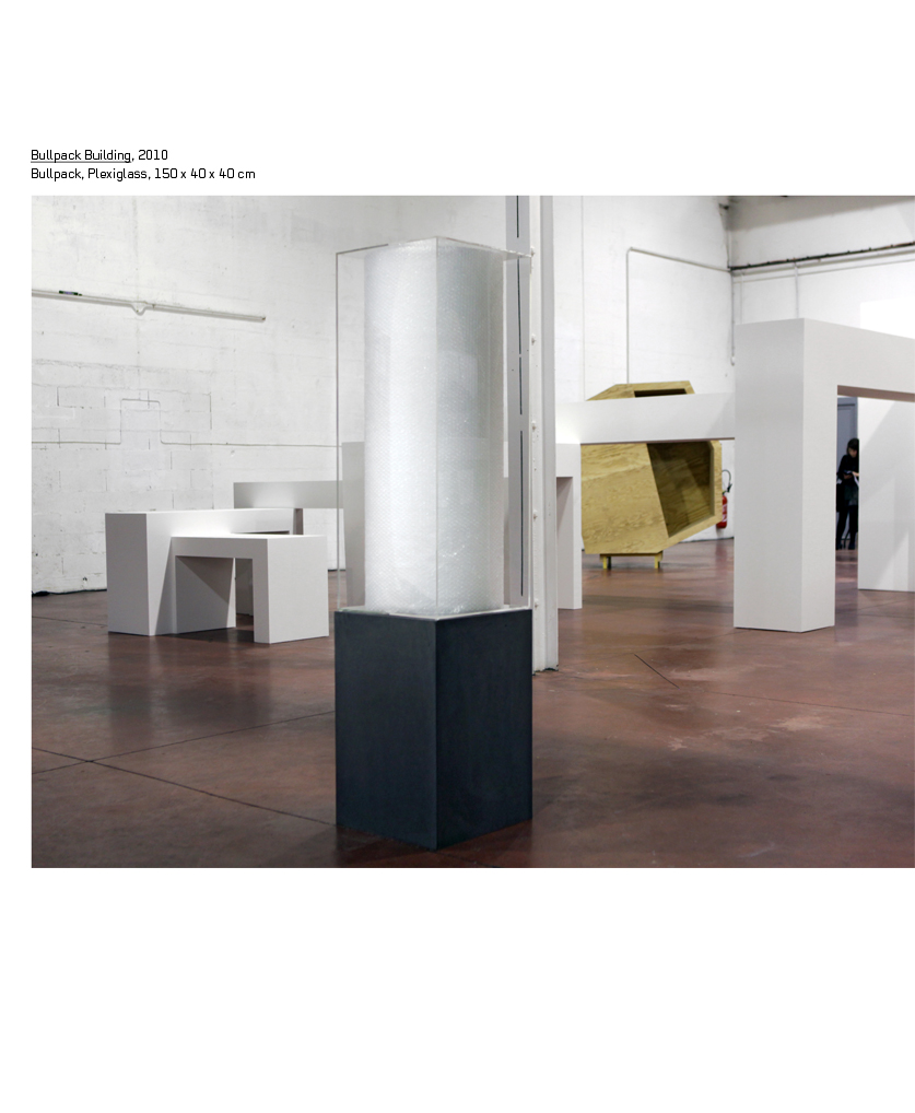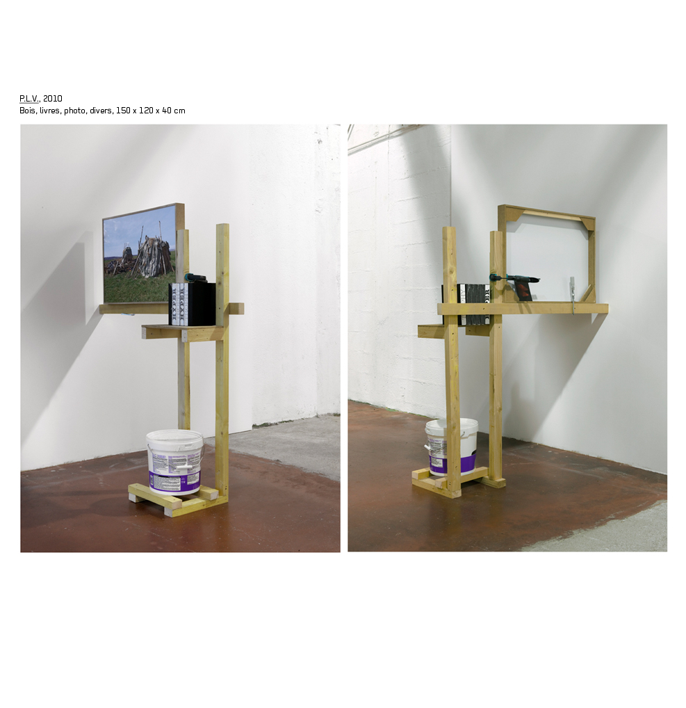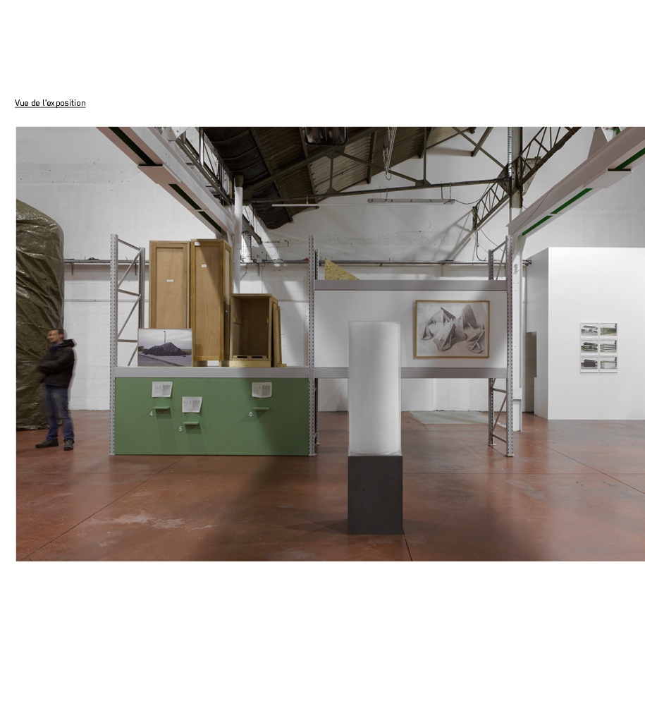 À ce stade, rien ne permet de distinguer avec exactitude les œuvres des dispositifs de présentation. Sans le filtre de l’accrochage, les identifications s’avèrent plus délicates. Entre étagères, ébauches sur papier, constructions en bois, volumes sous bâche, il est parfois difficile de se prononcer sur le statut exact de ces objets qui composent cet ensemble disparate et éclaté. Et pourtant tout est là. L’exposition, même dans son caractère fragmentaire, offre tous les indices pour reconstituer ce qui aurait pu se jouer si un événement n’avait pas fait disparaître le précurseur sombre en plein travail.