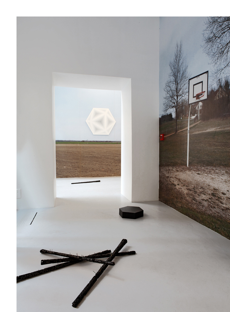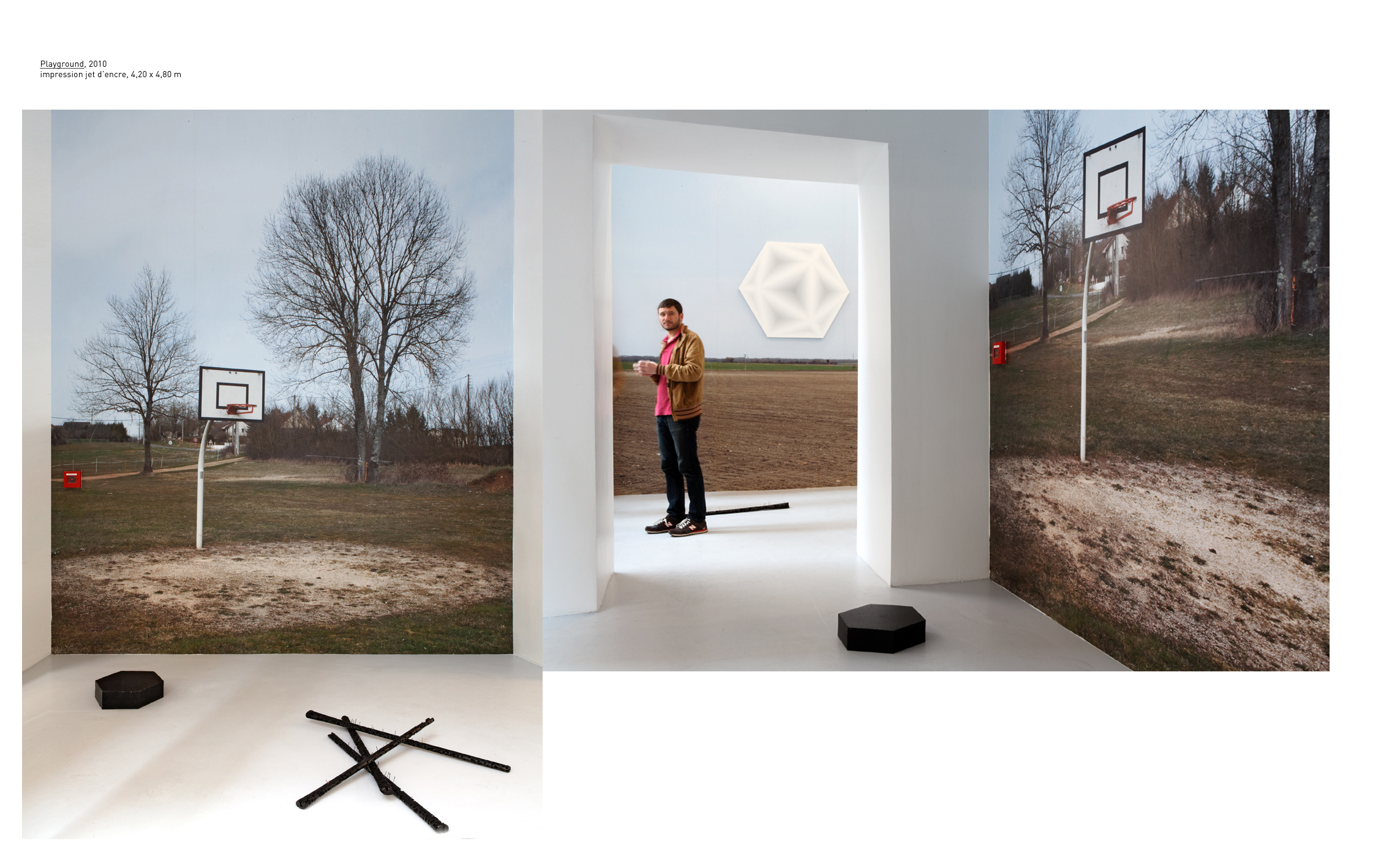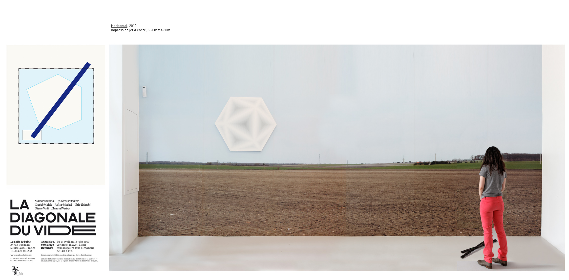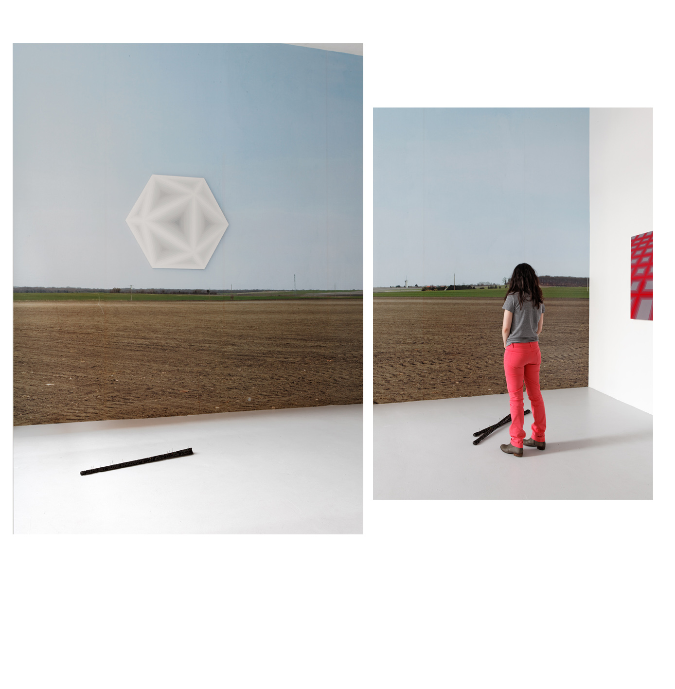 En effet, si on considère l’hexagone non comme un plan mais comme la représentation d’un cube en perspective axonométrique (3), je me trouve comme en équilibre à la pointe exacte où se rejoignent, l’horizontal et le vertical. Une limite au-delà de laquelle, s’aventurer signifierait chuter. Dès lors, je conçois qu’en dix années passées à sillonner la France, je n’ai jamais franchi les frontières de ce territoire que dessine la surface claire sur le schéma. Je comprends qu’il s’agit là, selon toute vraisemblance, d’une peur archaïque - celle d’une terre plate encore bordée de gouffres inconnus.
